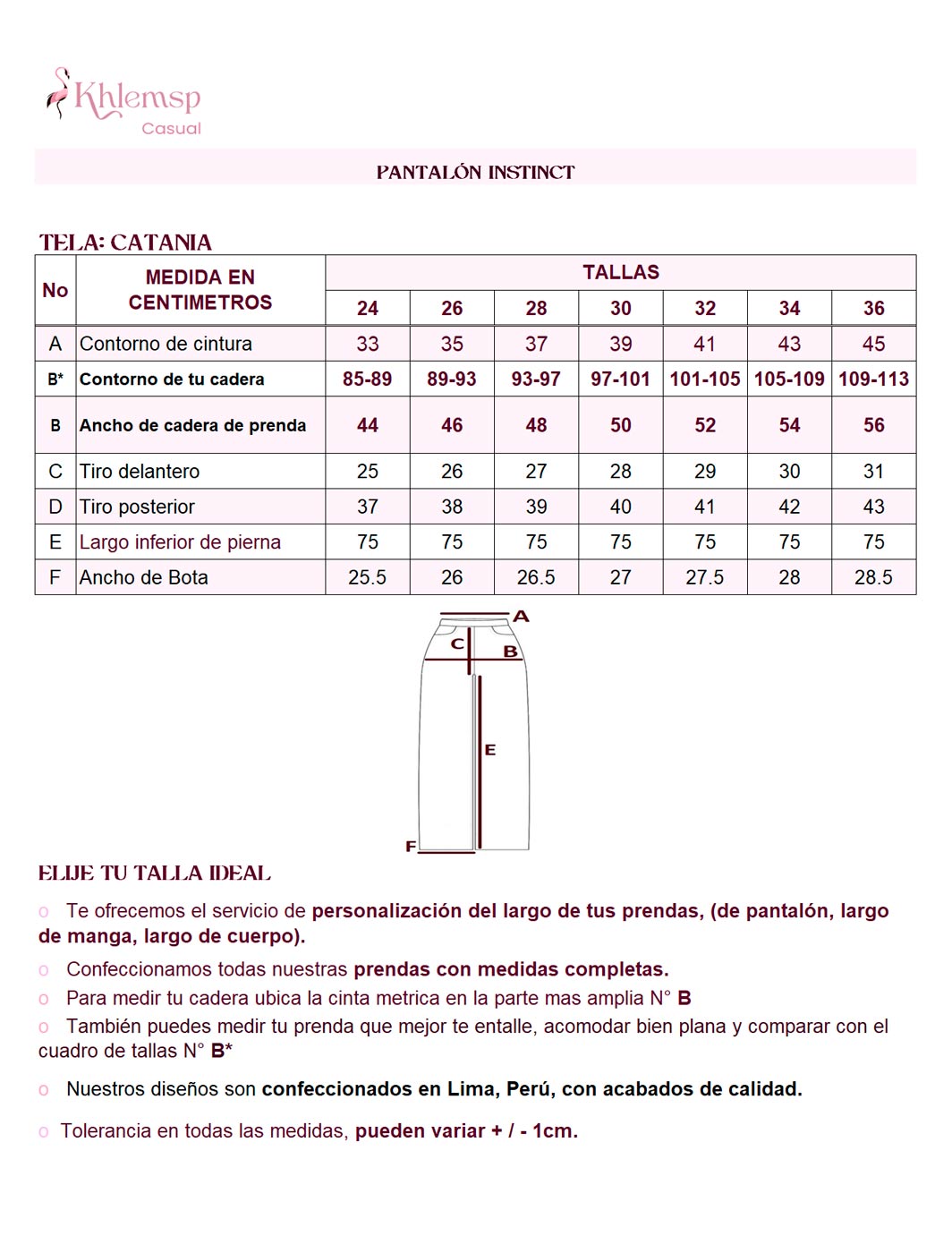 | Tallas | 26, 28, 30, 32, 34, 36 |